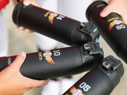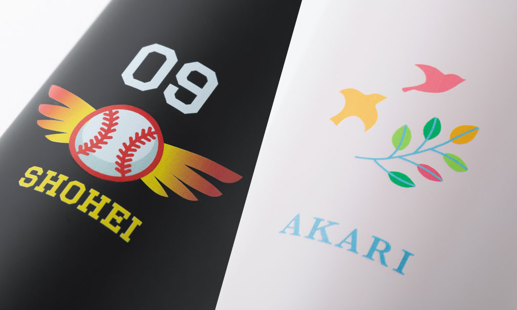 1色印刷だけでなくフルカラーでの印刷にも対応。ワンポイントの印刷から、ぐるっと360°印刷、クリア印刷にも対応しています。高性能印刷機を使用して色鮮やかに印刷されたタンブラーや水筒は、ハイクオリティなデザインと相まってワンランク上の品質です。